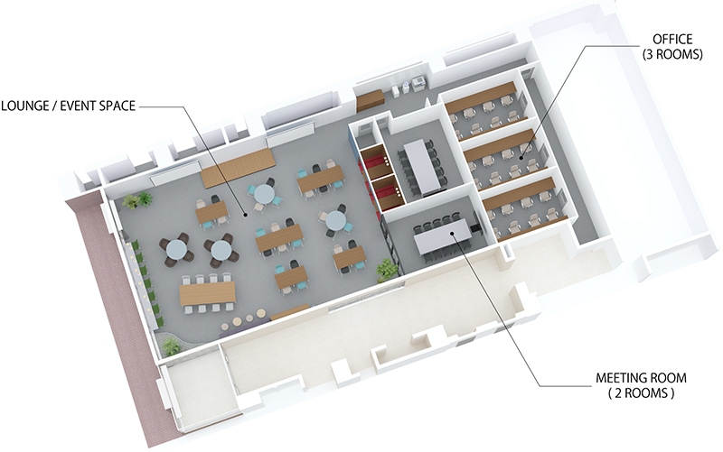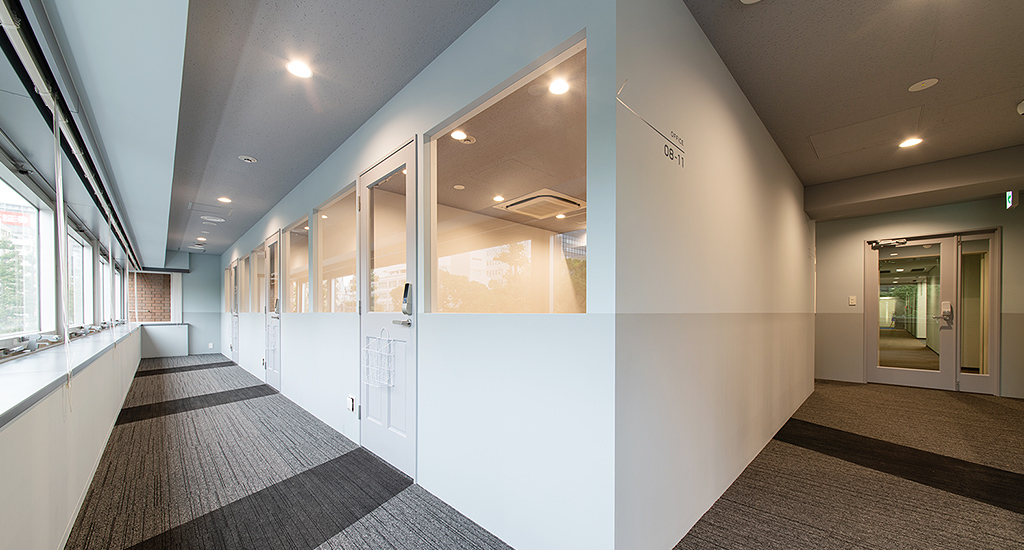 ビルの1階にはラウンジ・会議室2室・個室3室、3階には個室9室を整備しております。