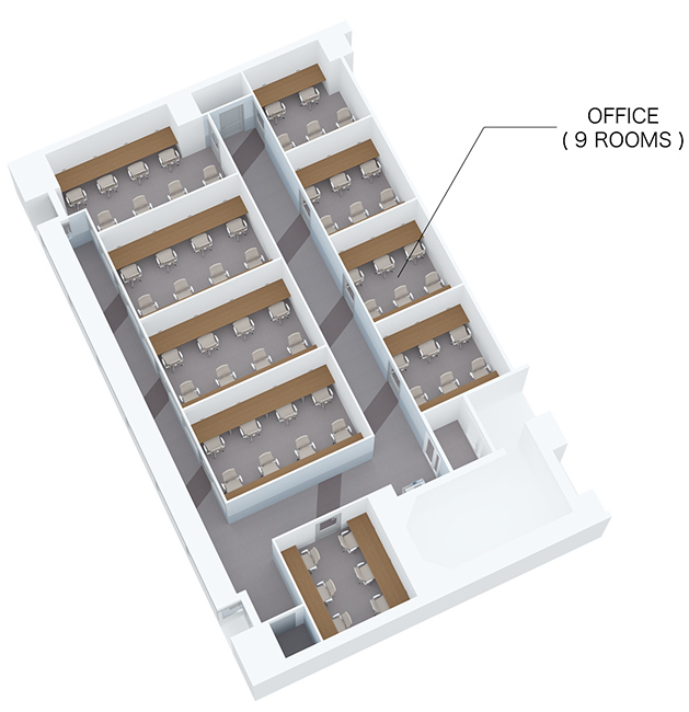 ビジネス支援付サービスオフィス(1階及び3階・1~8名用・全12室)。