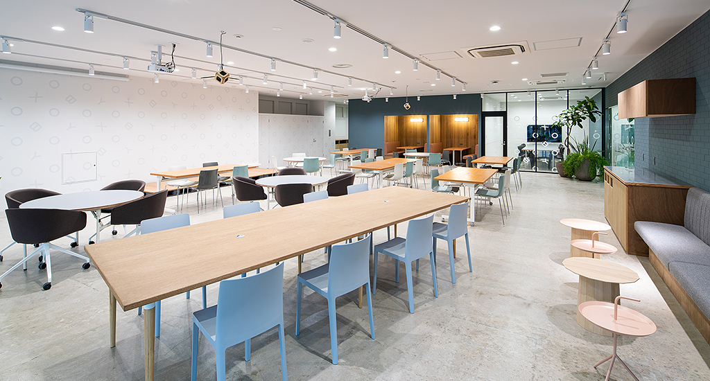 通常時はコワーキングスペースとして打合せや作業にご利用できるラウンジスペースを1階に配置。