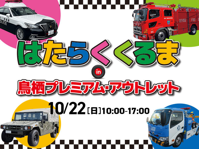 パトカーや自衛隊車両、子ども用消防車など一同に 「はたらくくるま in鳥栖プレミアム・アウトレット」
