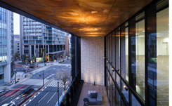 表通り(都市スケール)と小路(ヒューマンスケール)により生まれる都市の二面性こそが本敷地が持つ魅力と捉え、これを引き出す計画としました。アウターバルコニーはダイナミックな青山通りの都市スケールと呼応しながら、そこで過ごす人々のアクティビティを都市に映し出します。また職人の手仕事を感じるきめ細やかなタイル壁や塗装天井等の意匠とし、ヒューマンスケールを表現。都市スケールと共存するデザインを実現しました。