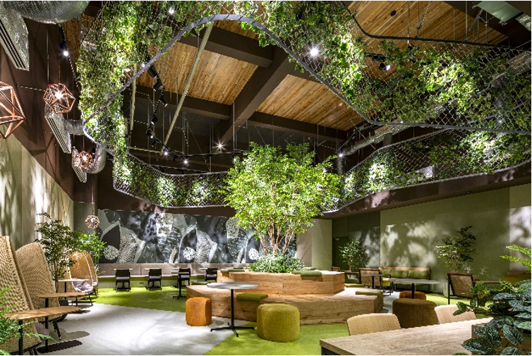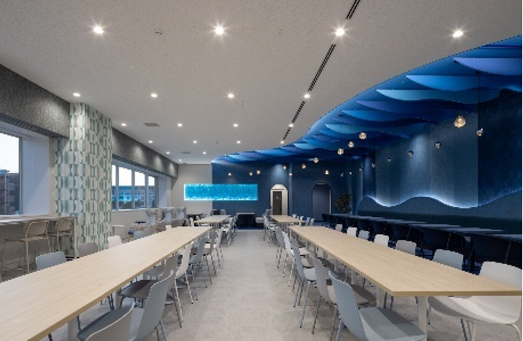 エントランスや3箇所の大規模ラウンジ等、共用部デザインを株式会社フィールドフォー・デザインオフィスが監修、株式会社メック・デザイン・インターナショナルが家具選定をしております。また、ラウンジの一部天井には、当社グループ会社のMEC Industry株式会社が製造している「MIデッキ」を採用しております。仕上げ材として国産木材を活用した製品を使用し、環境保全に寄与するとともに施設で働く従業員の安らぎの空間を演出します。