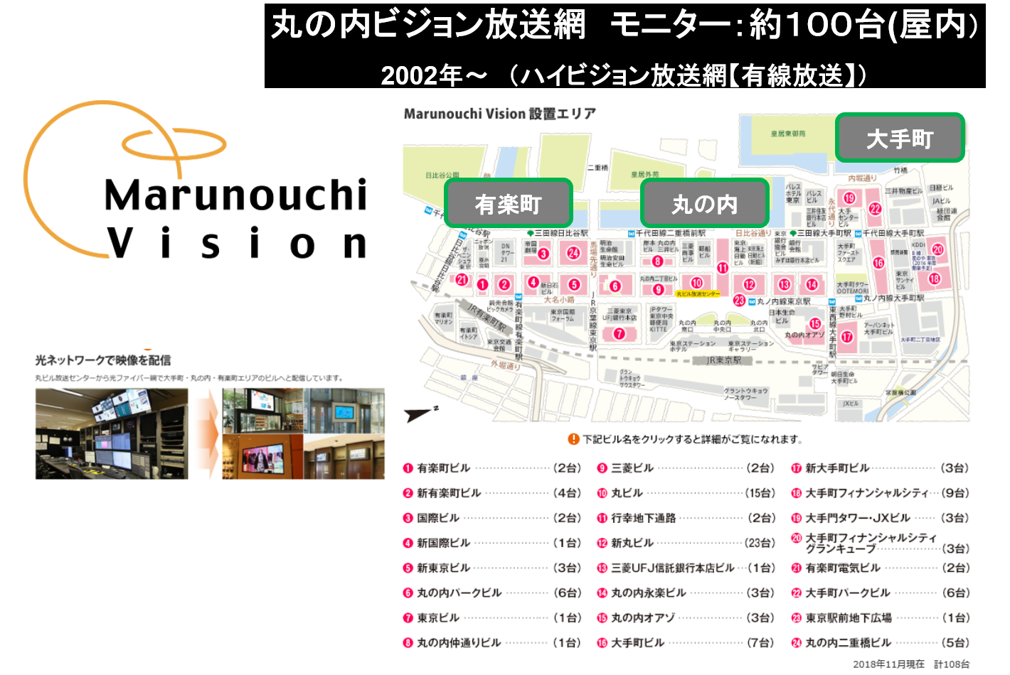 ・丸の内ビジョン(約100台のデジタルサイネージ)にテレビ放送と地域情報を配信
