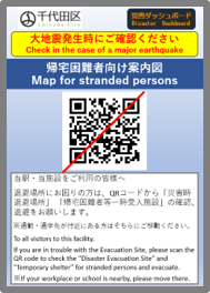 ・鉄道駅へQRコード掲出を行い避難者のスマホ・ブラウザの地図上に千代田区からのお知らせや帰宅困難者等一時受入施設、災害拠点病院などの情報を提供