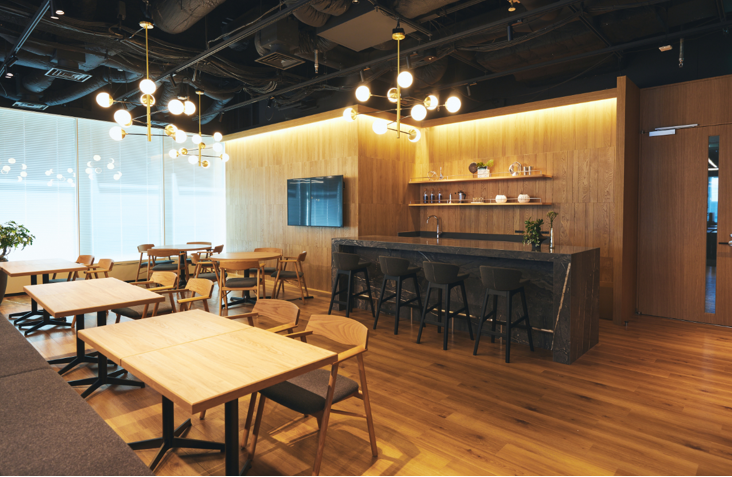 ・カフェ、ソロワークブース、フォーカスブース、ミーティングブース、ボックスシート、イベントスペースなど多彩な用途を持つビル共用ラウンジに併設(直結)
