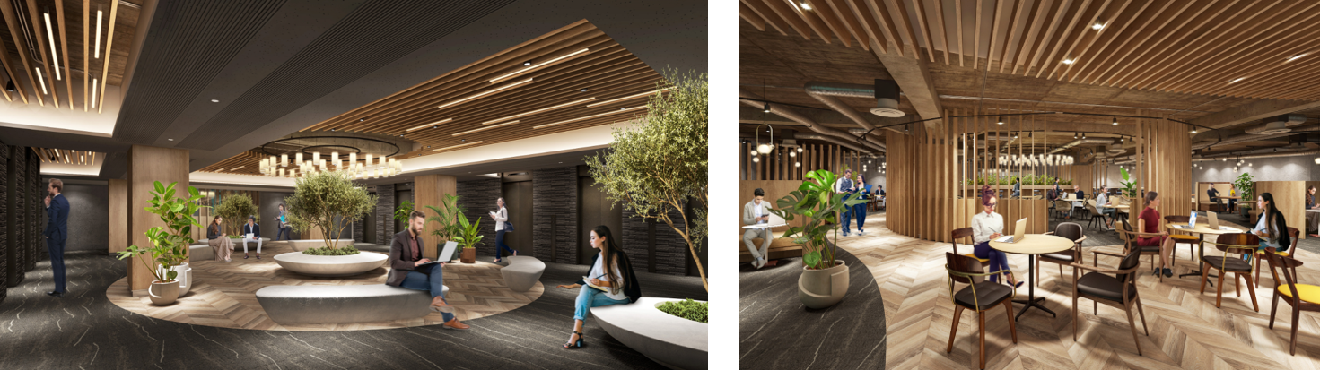 ▲新大手町ビル3階xLINK(3期拡張)とビル共用ラウンジ(イメージ)