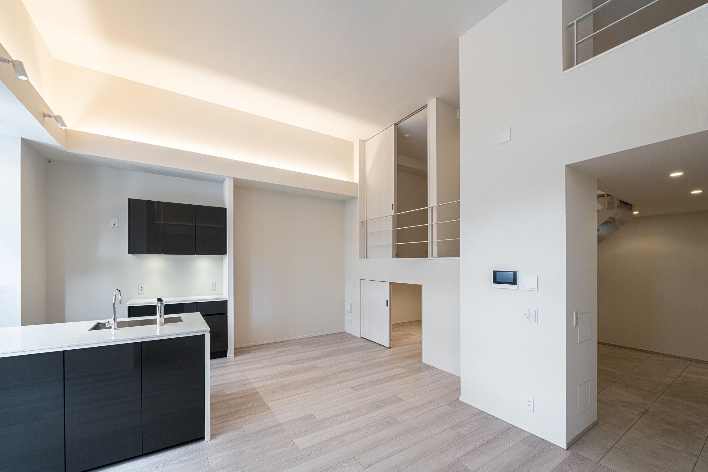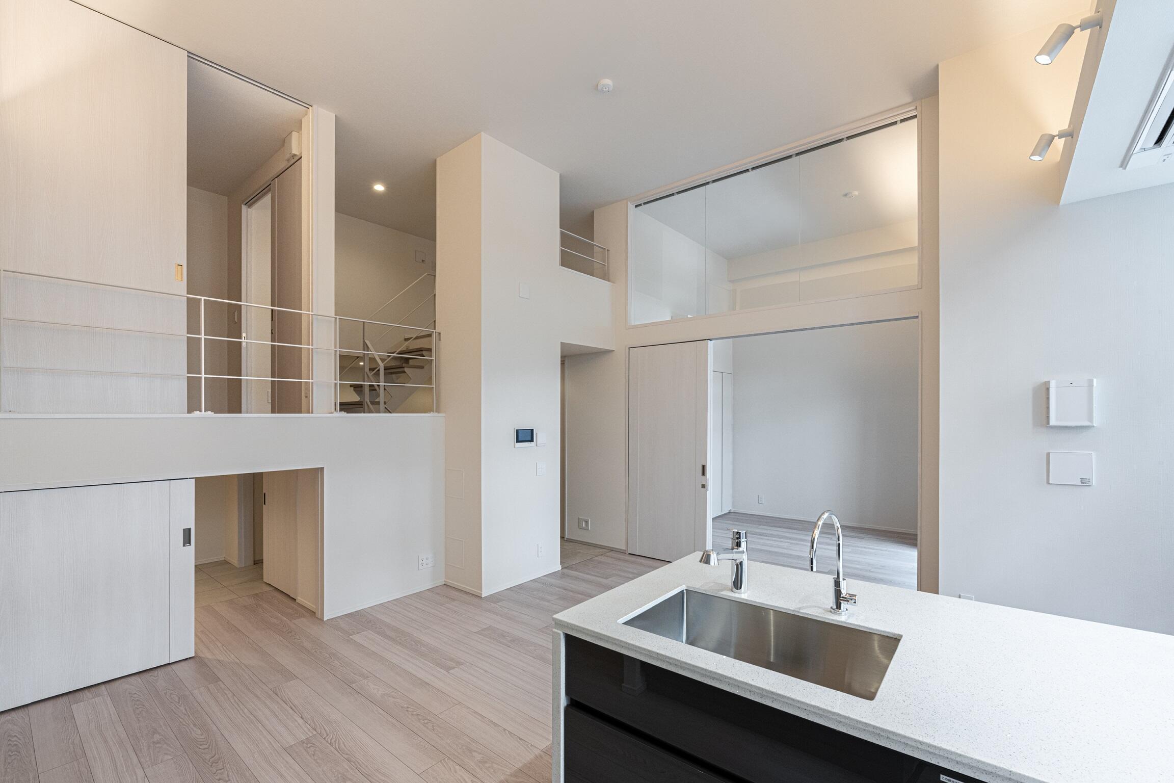 集合住宅において多く採用される、効率化を追求した田の字型プランは、実際に生活する居住者目線では、各居室が孤立し居住者同士が繋がる機会がなく、生活のあり方も固定される。プランにより一体感を備えつつ、かといってオープンにしすぎない方法はないかと検討を重ねた結果、空間を立体的に使い、高さを設けることで解決できると考えた。4.5mの階高を設け、空間を柔らかく仕切る多層的な1層(メインリビング)、1.25層(居室等)、1.5層(フリースペース)のレイヤーにより、入居者によって住まい方をカスタマイズでき、プライバシー性にも配慮しながら各エリアの気配を感じられる、入居者同士が繋がり合うプランをデザインした。