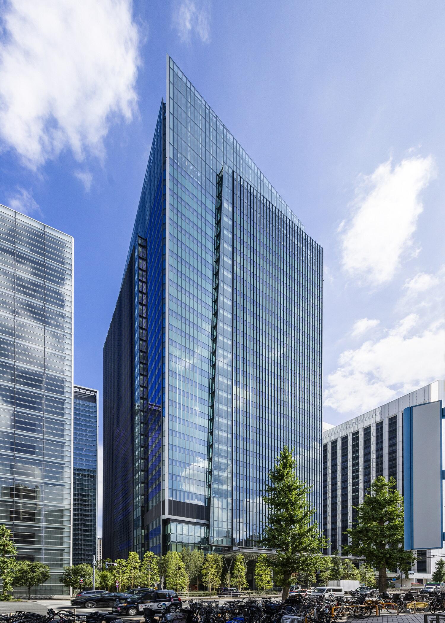 旧東海道の玄関口に近い、薩摩藩邸の跡地に建つ「田町タワー」。オフィスフロアに設けられた国内初の半屋外空間「ウインターガーデン」を外観上の特徴とし、働く人のコミュニケーションを創誘発する仕組みが垣間見られる。こうした魅力的なワークプレイスの創出や働く人びとのウェル・ビーイング向上とともに、環境シミュレーションで最適化した外装フィンによる日射遮断や自然換気などで持続可能性にも配慮。特許を取得した芯棒型制御システムによるBCP対策も含めて、多側面から「次代のオフィス・スタンダード」を追求した。立体的な屋外広場の整備、地域貢献機能の強化など、総合設計制度を活用して街区全体の機能を高め、地域のまちづくりに貢献する。