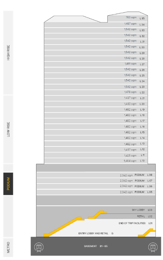 本物件(物件価値※1:約13億豪ドル(約1,235億円※2))は、地下鉄シドニーメトロの新駅「Gadigal(ガディガル)(旧称:Pitt Street)」駅の開発事業、Oxford Properties Groupが進める賃貸住宅棟開発事業と三位一体で進められた大規模複合開発の一部です。