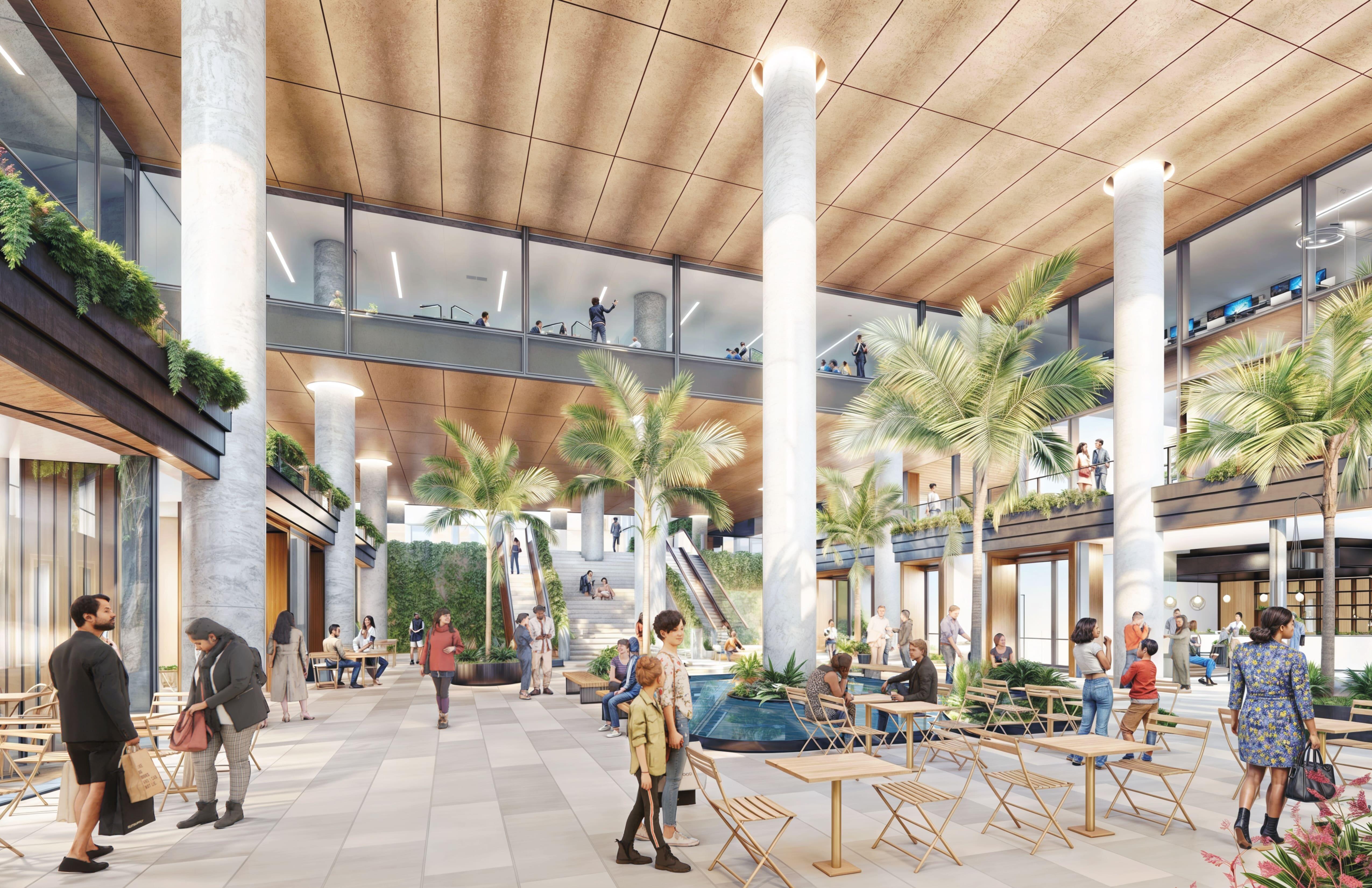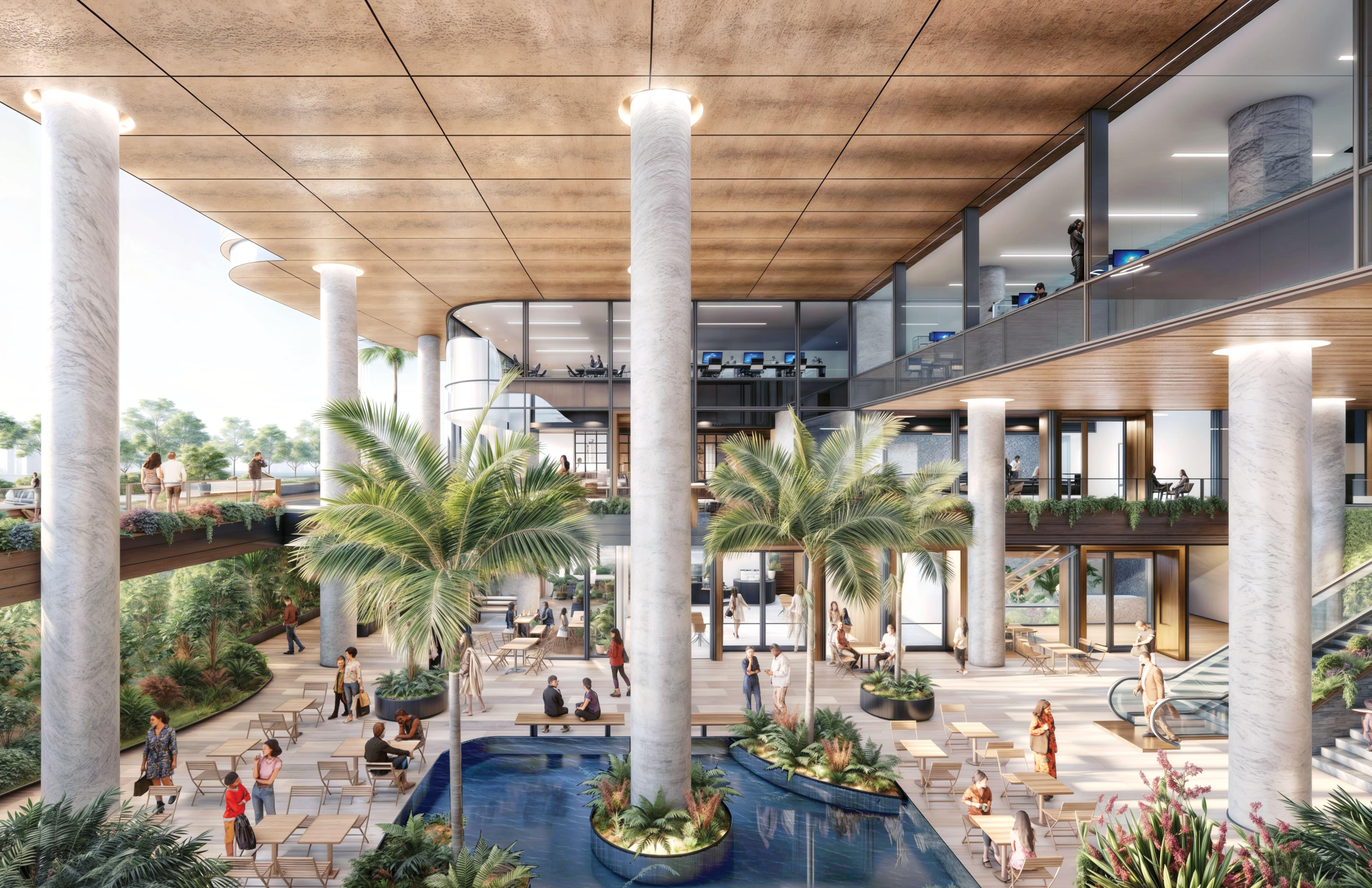 エリア最高グレードのオフィスビル、新たなランドマークとなることを目指し、オフィス就業者・商業利用者等の幅広いニーズに対応し、サンクンガーデンを中心とした広大なオープンスペースを設けるなど、快適性に配慮した設計としています。