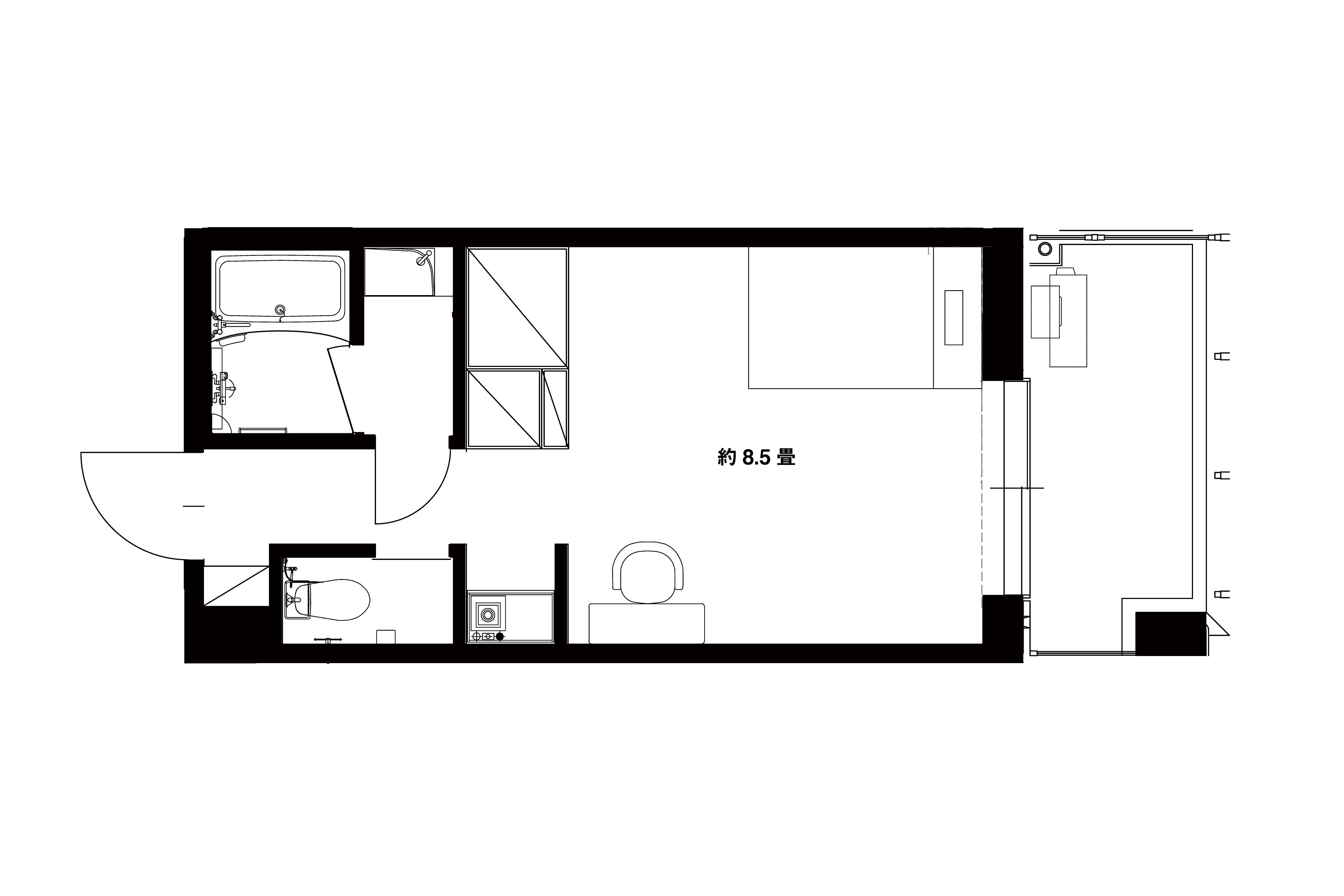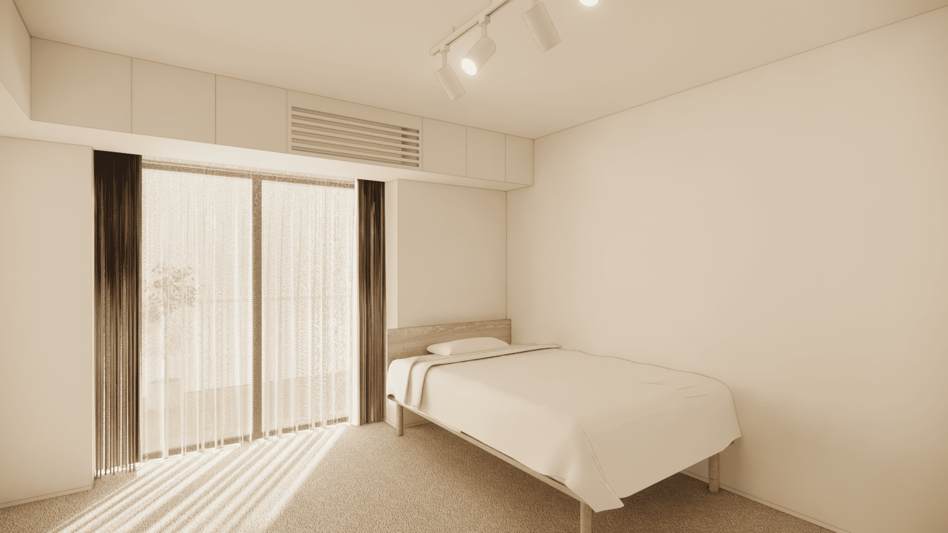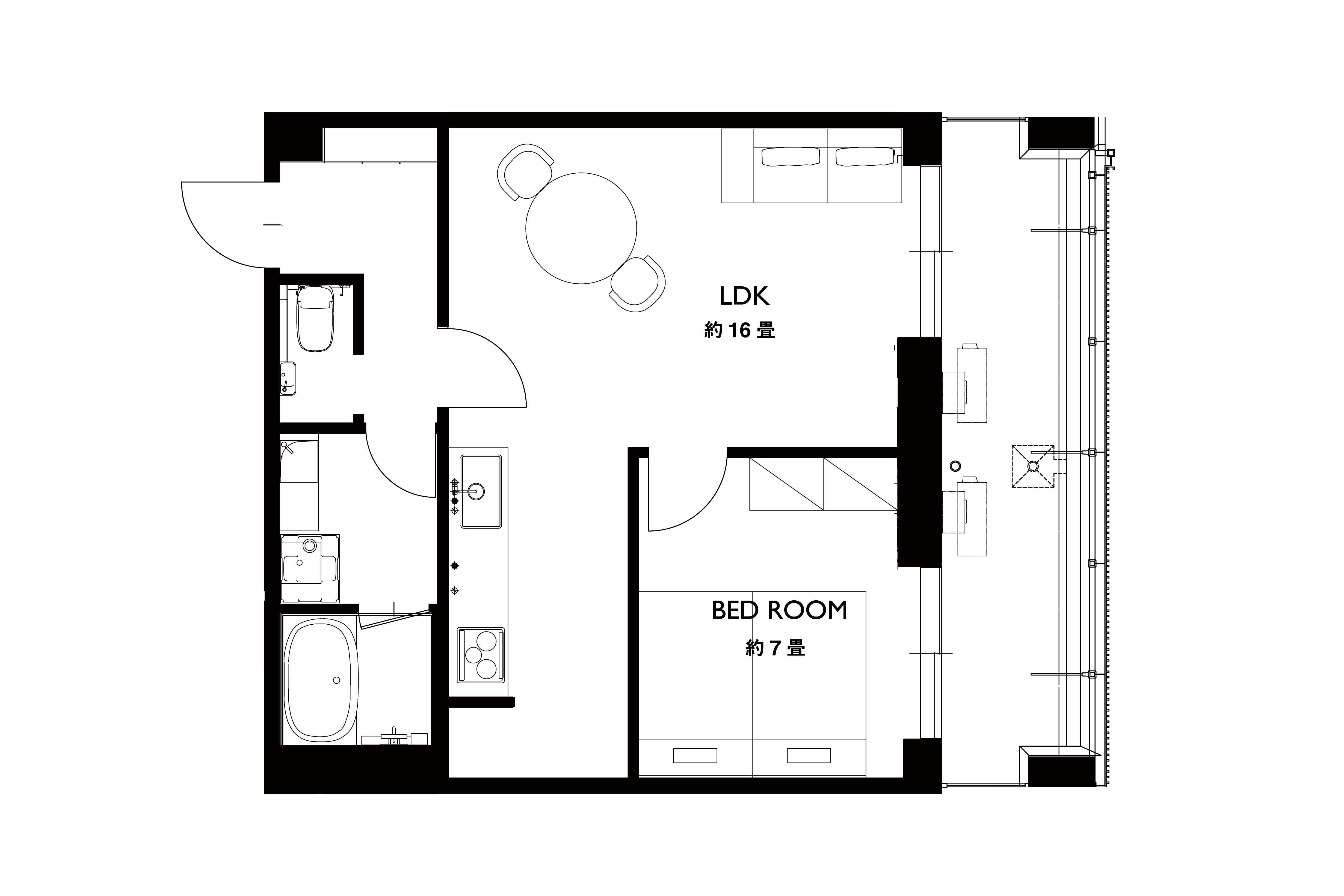 レインボーブリッジを臨む菜園付きのルーフトップ、100㎡を超えるダイニングラウンジ等充実した共用部を設け、入居者間の交流を促進します。居室は1R(25.1㎡)と1LDK(50.3㎡)の2タイプで、ベッドや冷蔵庫等の家具・家電付きです。また各部屋の初入居企業に限り、リカバリーウェア「BAKUNE」をはじめとするコンディショニングブランド「TENTIAL」製品も提供いたします。