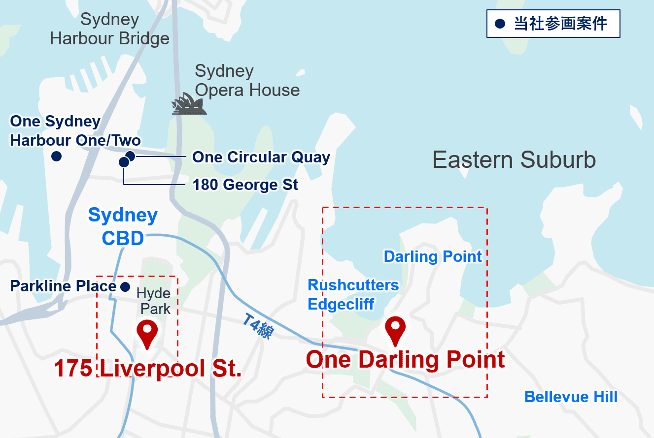 「One Darling Point」はアフォーダブル住宅を含む分譲住宅中心の複合開発事業、「175 Liverpool Street」はオフィスビルを高層住宅2棟へ建て替える再開発事業で、合計の総売上は約3,000億円の見込みです。いずれも豪州大手不動産デベロッパーであるLendleaseとの共同事業で、シドニーラグジュアリー住宅セクターでは「One Sydney Harbour Residences One」、「One Sydney Harbour Residences Two」、「One Circular Quay」に次ぐ同社との第4 弾・第5弾案件となります。
