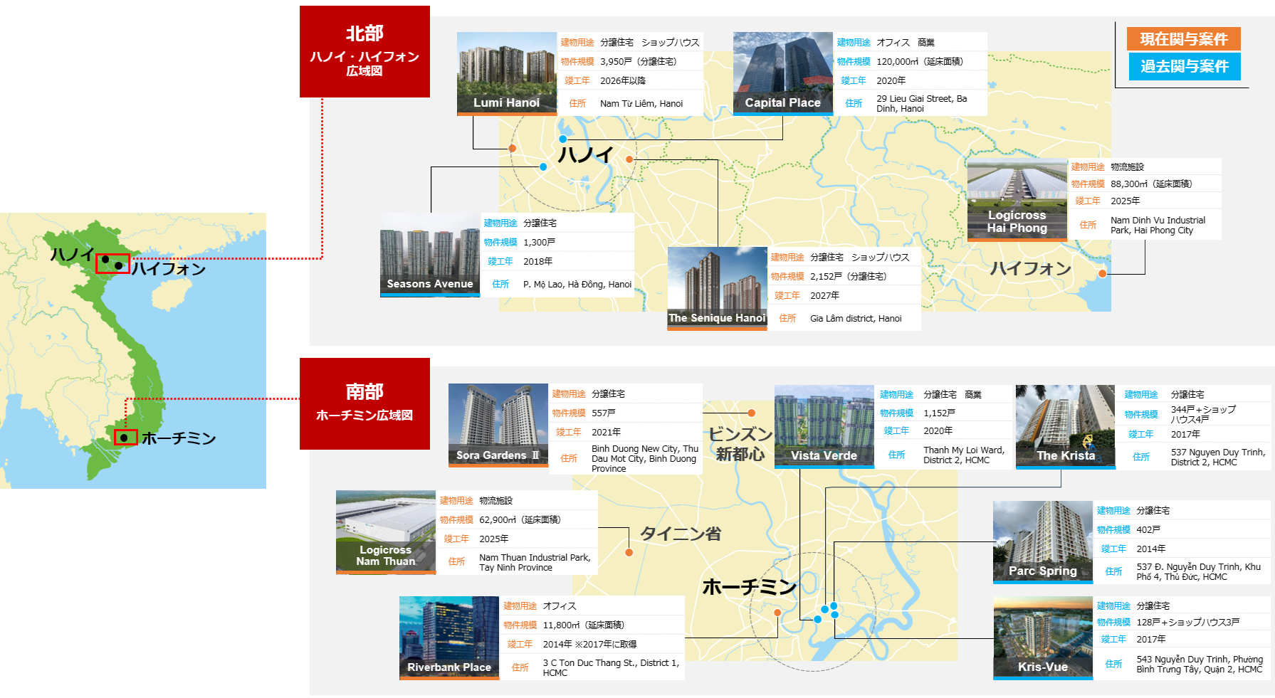 三菱地所は2010年に初めてベトナムで事業に参画、2019年に現地法人をホーチミンにて立ち上げ、2020年にはハノイに支店を開設し、オフィスや分譲マンション開発など複数の事業を推進し、これまで1,000億円の投資を実行して参りました。今後も日本、ベトナムおよび海外各国での経験を活かし、新規の物流施設開発や住宅・オフィスビル開発を中心に投資を行ってまいります。