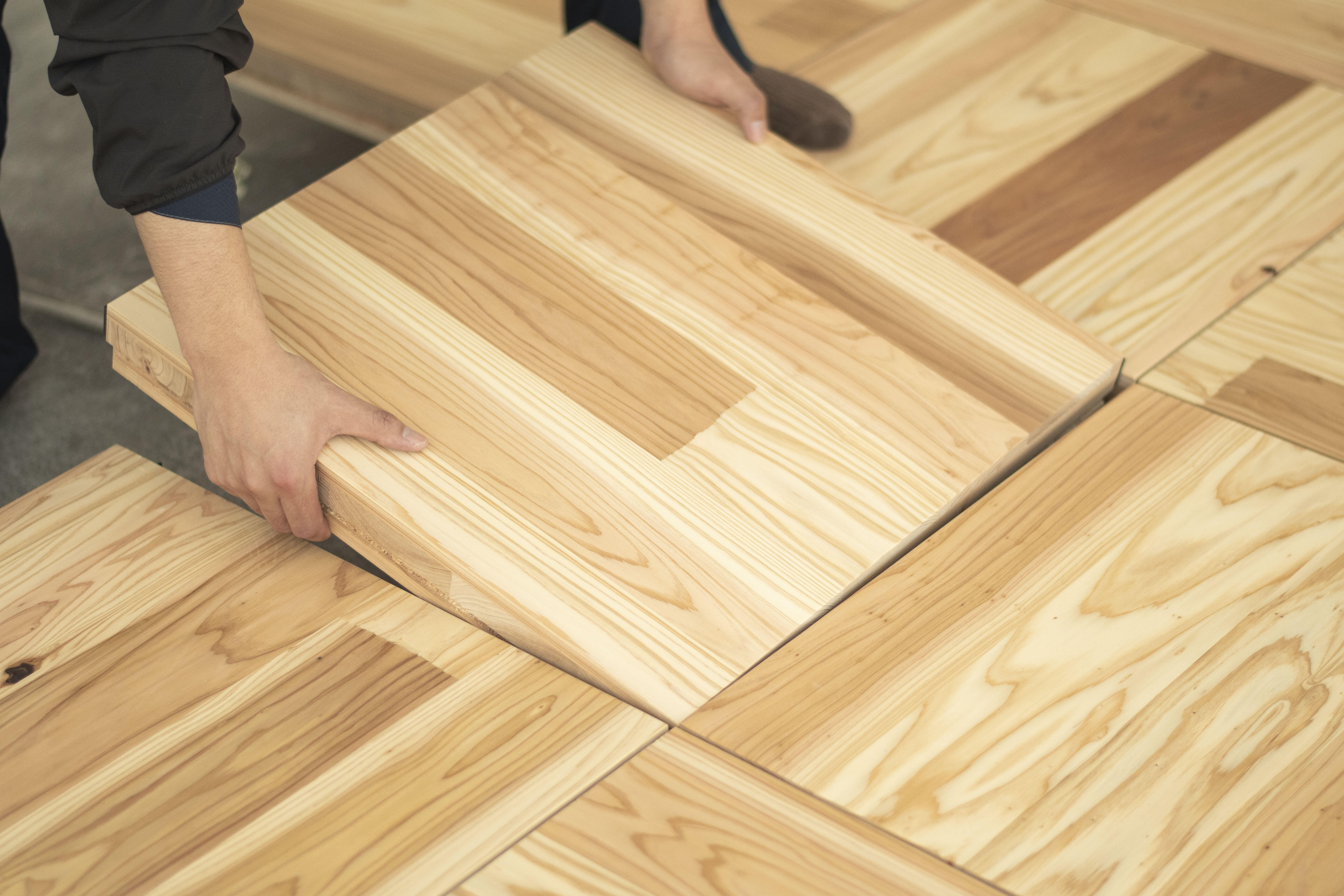 施工が簡単で誰でも取り入れやすい木製フロアユニットであり、CLTを使い、かつ表面に金物が見えない構造を開発したことで、木の風合いが床一面に広がり美しい空間になる。経年利用で表面に傷がついても、研磨をすることで元の美しさに戻る、サステナブルな製品である点も良い。