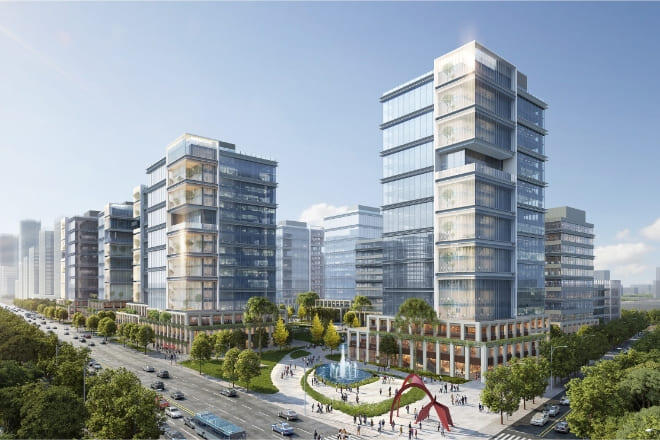 米系大手デベロッパーのTishman Speyer社、中国国有不動産開発企業の新長寧集団、大手運送サービス企業のHuoLaLa社と共に手掛ける大規模複合開発プロジェクト「晶耀虹橋(Crystal Bridge)」。中国上海市内における当社グループ初のオフィス開発プロジェクトとなっています。計画地は、周辺に日本領事館や400社超の日系企業が集積しているほか、地下鉄2路線が利用可能で飲食店等の商業機能も充実しており、高い交通利便性と快適性を誇る上海市内有数のオフィス街に位置しています。